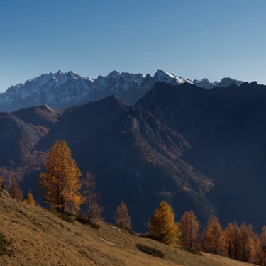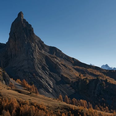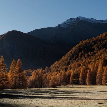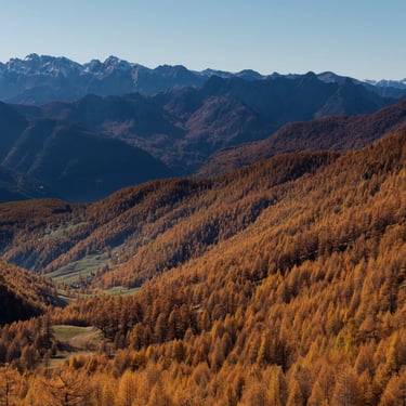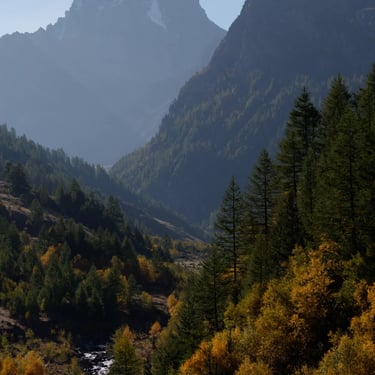 L'automne dans le Queyras, la montagne se métamorphose. Le mélèze, seul conifère d'Europe à perdre ses aiguilles offre un dégradé de couleurs allant du vert à l'orange.